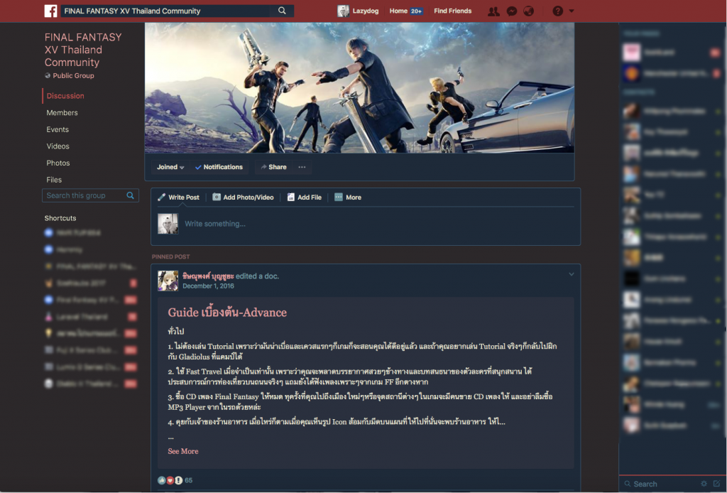 แต่ที่ถูกใจที่สุดคือตัว Blue and Red (dark colorful Facebook theme) ครับ รูปที่อยู่ด้านบนสุดนั่นแหละครับ สีมันสวยดีแต่บางส่วนก็ไม่ทำงานแล้วเช่นแถบสีน้ำเงินด้านบนสุดและบางส่วนก็ไม่ชอบเลยเอามาปรับแต่งเองนิดหน่อย